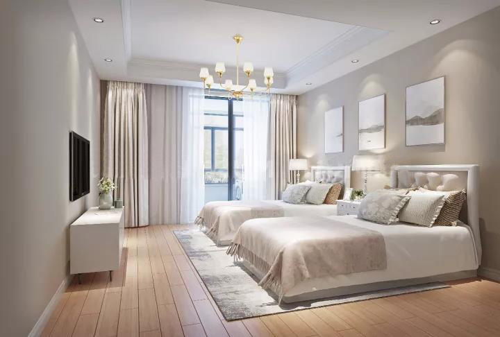 富有设计感的挂画,干净柔软的床上用品,用色和谐的卧室不但让温馨的氛围满溢,更加浪漫。