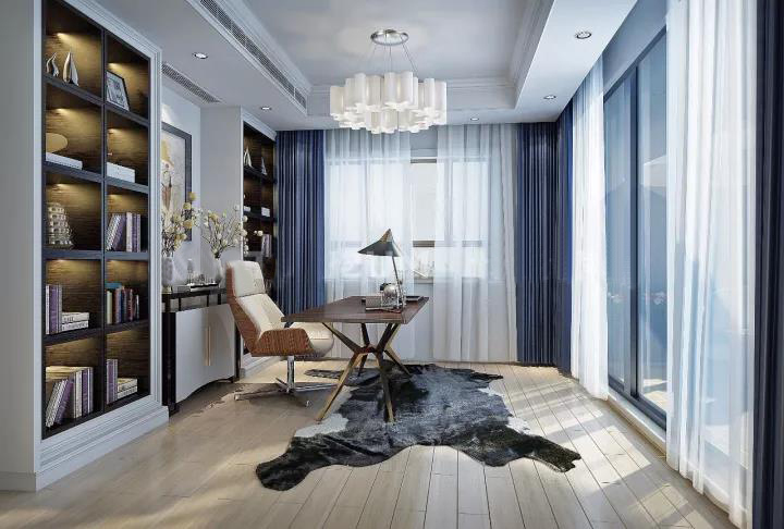 金属与皮质的家具,野性十足的地毯,深蓝色的点缀,让整个空间简约而且充满格调。